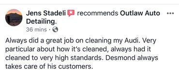 Includes – carpet shampoo, spot treatment, leather cleaning/treatment, thorough vacuuming, full cleaning of dashboard, cupholders, instrument panel, all door panels, door jambs, UV protectant on all plastics and vinyl, headliner, windows, hand wash, clay bar treatment, exterior trim conditioning, wax application, sealant protection, detail wheels, shine tires, wash windows. And ALL of the details in between. *Rodent urine and/or droppings are $200 minimum additional fee.